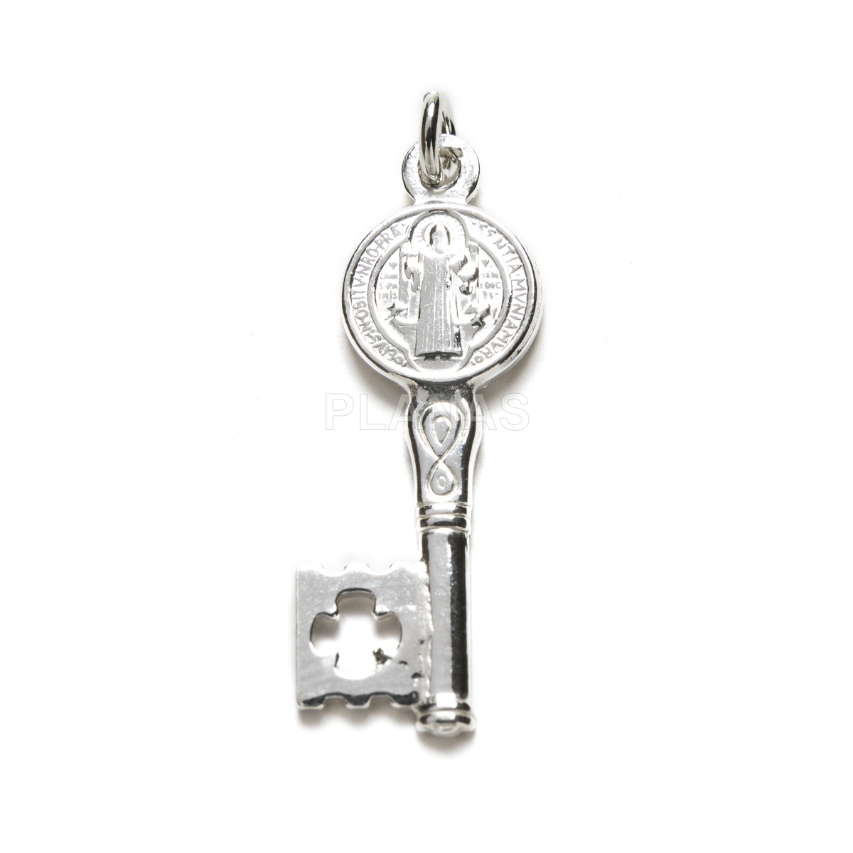 Pingente em prata de lei. chave de são bento.