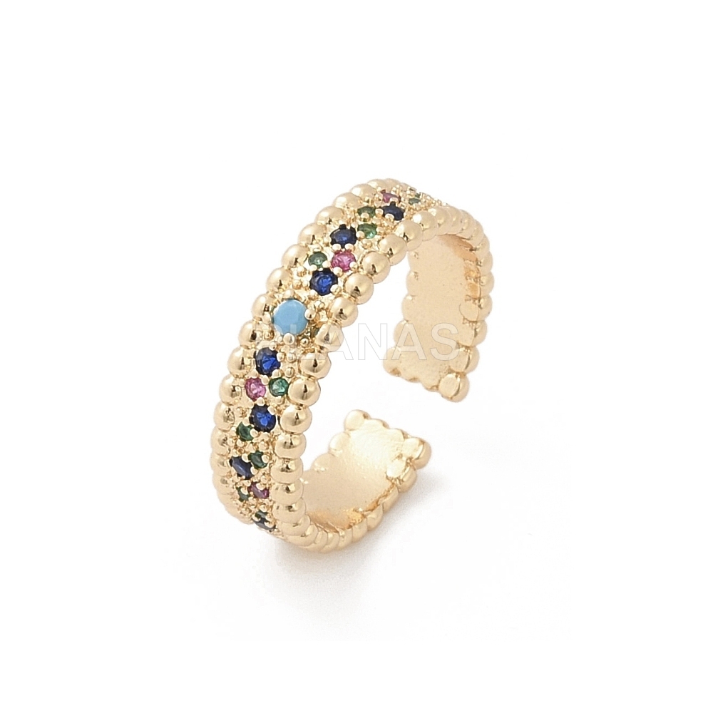 Anel banhado a ouro e latão com zircônia.