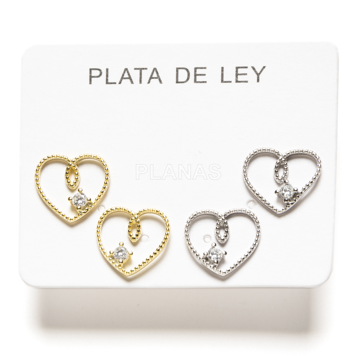 Conjunto com 2 pares de brincos em prata de lei e zircônia cúbica. coração.