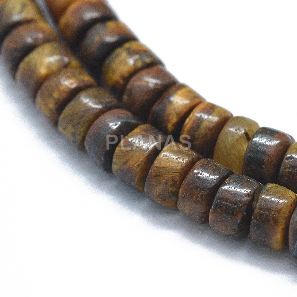 Tira facetada de olho de tigre com aproximadamente 10 mm de diâmetro.