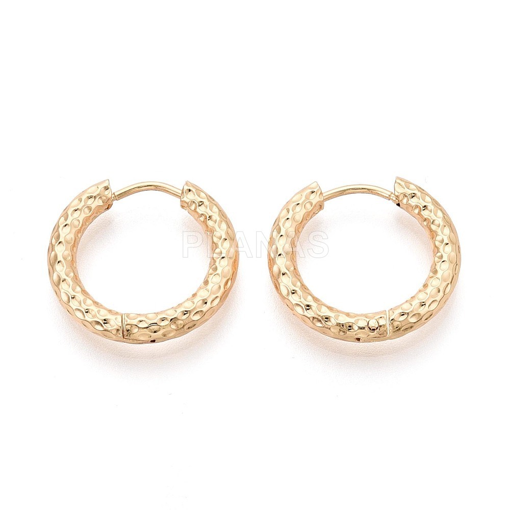 Brincos em aço inoxidável 304 com banho de ouro. 15 x 17 mm.